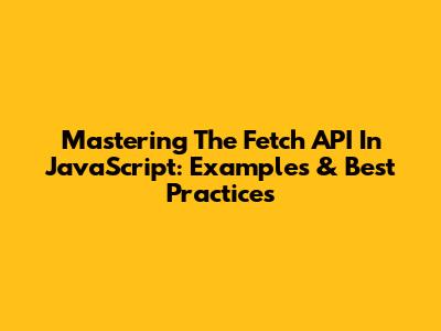 Mastering The Fetch API In JavaScript: Examples & Best Practices