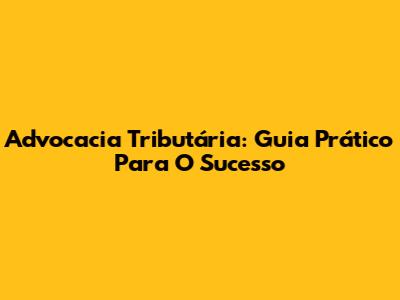 Advocacia Tributária: Guia Prático Para O Sucesso