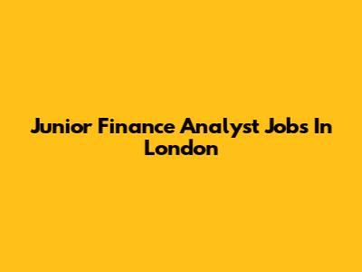 Junior Finance Analyst Jobs In London