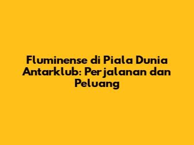 Semoga artikel ini memberikan gambaran yang jelas dan komprehensif tentang perjalanan Fluminense di Piala Dunia Antarklub. Mari kita dukung Fluminense dan berharap yang terbaik untuk mereka!