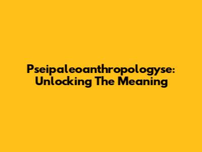 Pseipaleoanthropologyse: Unlocking The Meaning