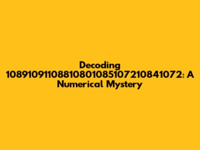 Decoding 10891091108810801085107210841072: A Numerical Mystery