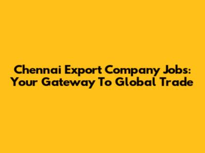 Chennai Export Company Jobs: Your Gateway To Global Trade