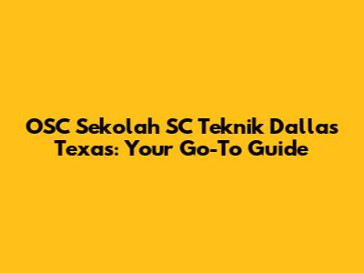 Hey guys! Welcome to your one-stop guide to everything OSC Sekolah SC Teknik in Dallas, Texas. If you're scratching your head wondering what that even is, don't sweat it. We're going to break down all the details, from what OSC Sekolah SC Teknik actually does, to why it's important, and how you can get involved. Think of this as your friendly, comprehensive overview of this cool organization right here in the heart of Texas. We'll cover everything from their mission and services to how you can connect with them. So, grab a coffee, sit back, and let's dive into the world of OSC Sekolah SC Teknik!