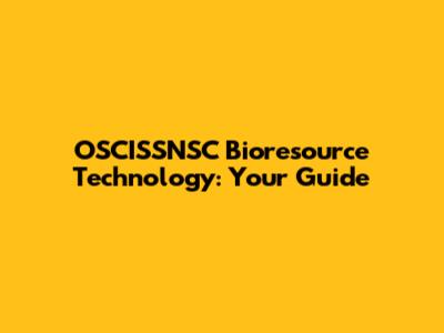 OSCISSNSC Bioresource Technology: Your Guide