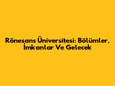 Rönesans Üniversitesi: Bölümler, İmkanlar Ve Gelecek